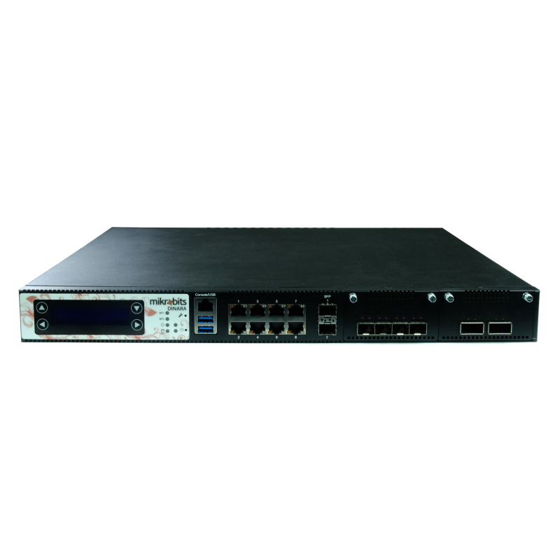 Mikrobits Dinara 1U rackmount Network Appliance yang berbasiskan prosesor Intel Xeon W Octa Core 3.4GHz. Dilengkapi dengan 8 port Intel gigabit ethernet, 2 port Intel 1G fiber SFP, 4 port Intel 10G fiber SFP+ dan 2 port Intel 40G fiber QSFP+.
