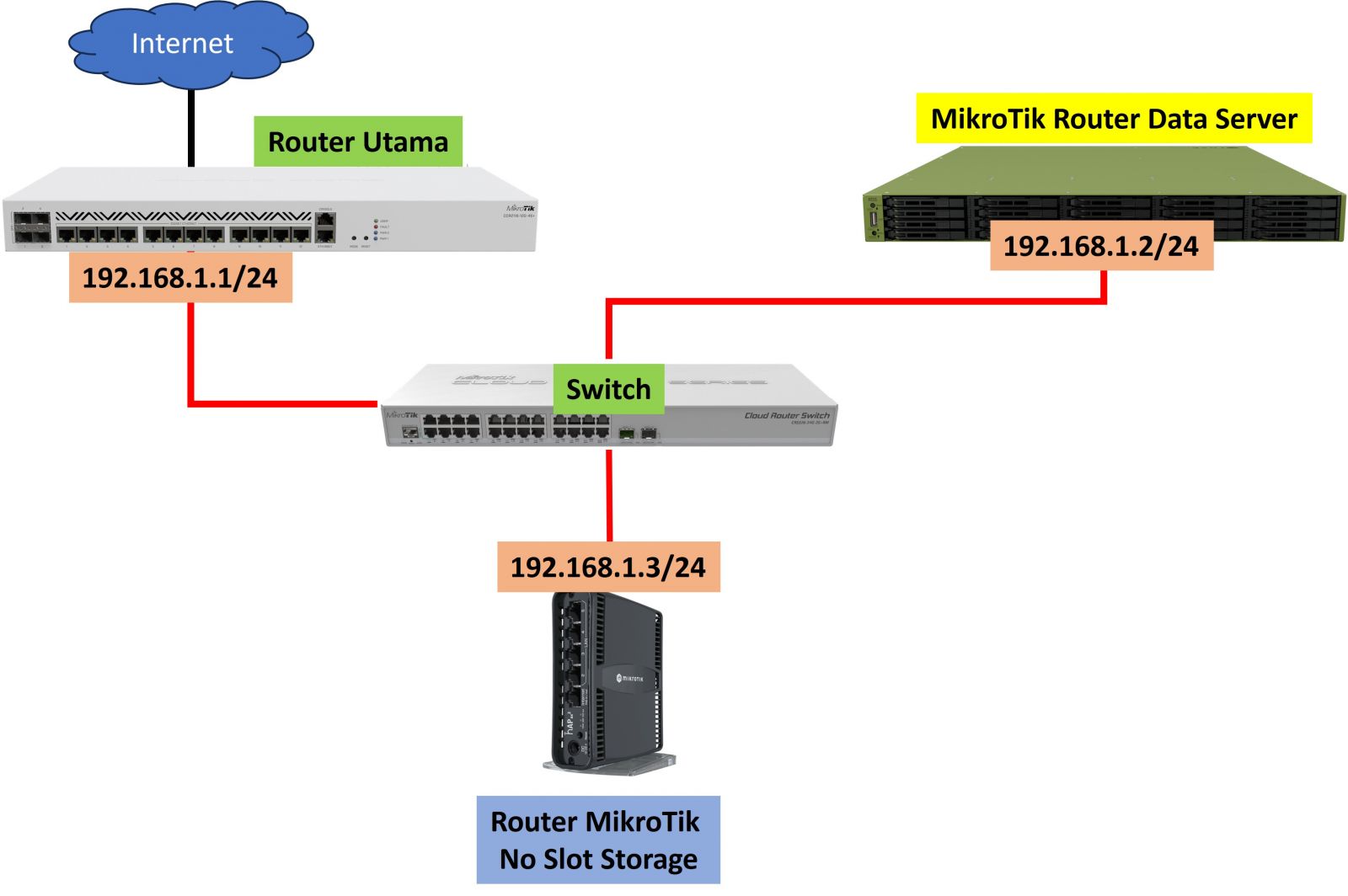 Untuk menggunakan fitur ini, baik di Router Data Server dan Router yang tidak memiliki slot storage (hAP AX2), pastikan sudah terpasang IP address dan sudah bisa saling berkomunikasi.