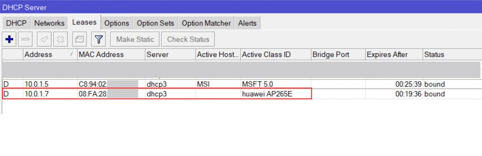dapat dilihat AP265E mendapat IP 10.0.1.7 sedangkan laptop mendapat IP 10.0.1.5