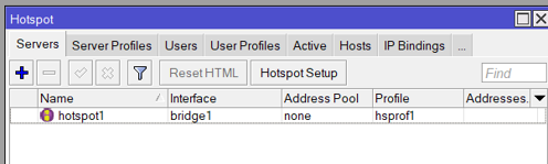1. Pertama, kita akan membuat hospot seperti biasa dengan hospot setup dan sesuaikan ke interface yang akan digunakan untuk menyebarkan hospot.