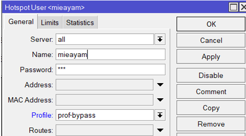 3. Jangan lupa untuk membuatkan user client pada menu users, pastikan juga menggunakan profile yang telah dibuat tadi