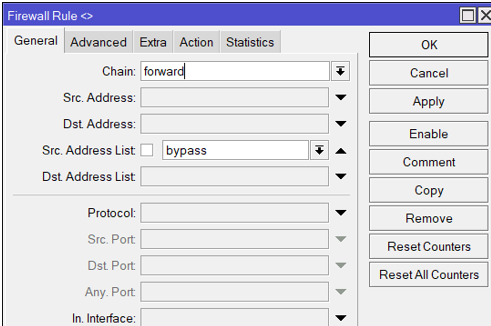 4. Selanjutnya kita masuk ke firewall filter rules untuk membatasi setiap client hanya bisa sampai 200 connection.