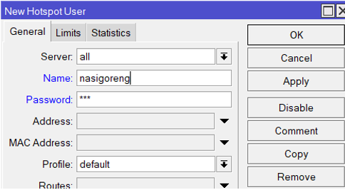 Cara ini digunakan untuk membatasi koneksi yang digunakan oleh setiap user hotspot. Rule ini akan aktif ketika penggunaan koneksi dari user hotspot melebihi dari limit yang ditetapkan. Singkatnya, koneksi user di atas limit akan didrop, dan jika di bawah limit maka rule tidak aktif.