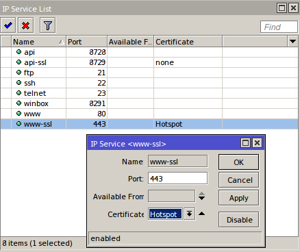 Setelah dibuat SSL Certificate, selanjutnya kita akan mengimplementasikan pada fitur hotspot. Untuk langkah awalnya kita akan membuat service hotspot seperti biasa terlebih dahulu. Langkah-langkahnya bisa dilihat pada artikel sebelumnya disini.