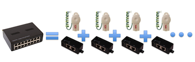 Dengan bantuan Adaptor 24volt - 5A yang sudah termasuk didalam paket pembelian, maka NetProtector bisa memberikan catudaya ke 8 perangkat wireless sekaligus.